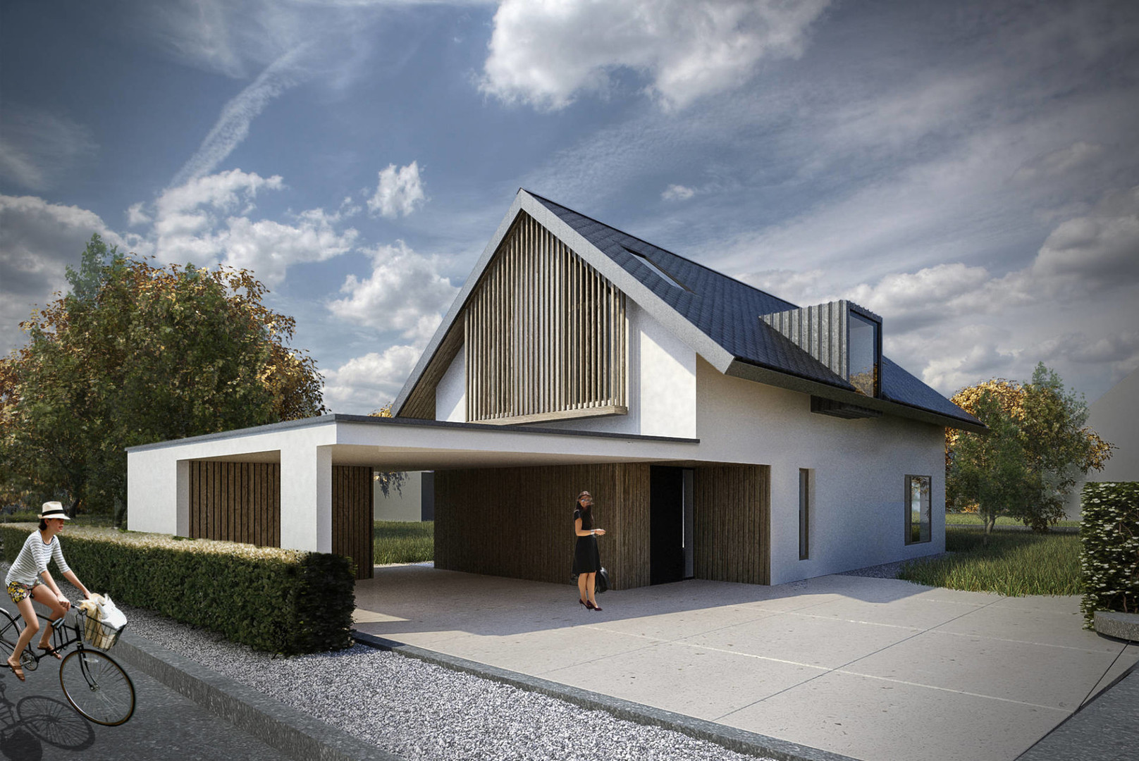 Individualna stanovanjska hiša z nadstreškom in lopo - Kranj (dvokapna streha s frčado)